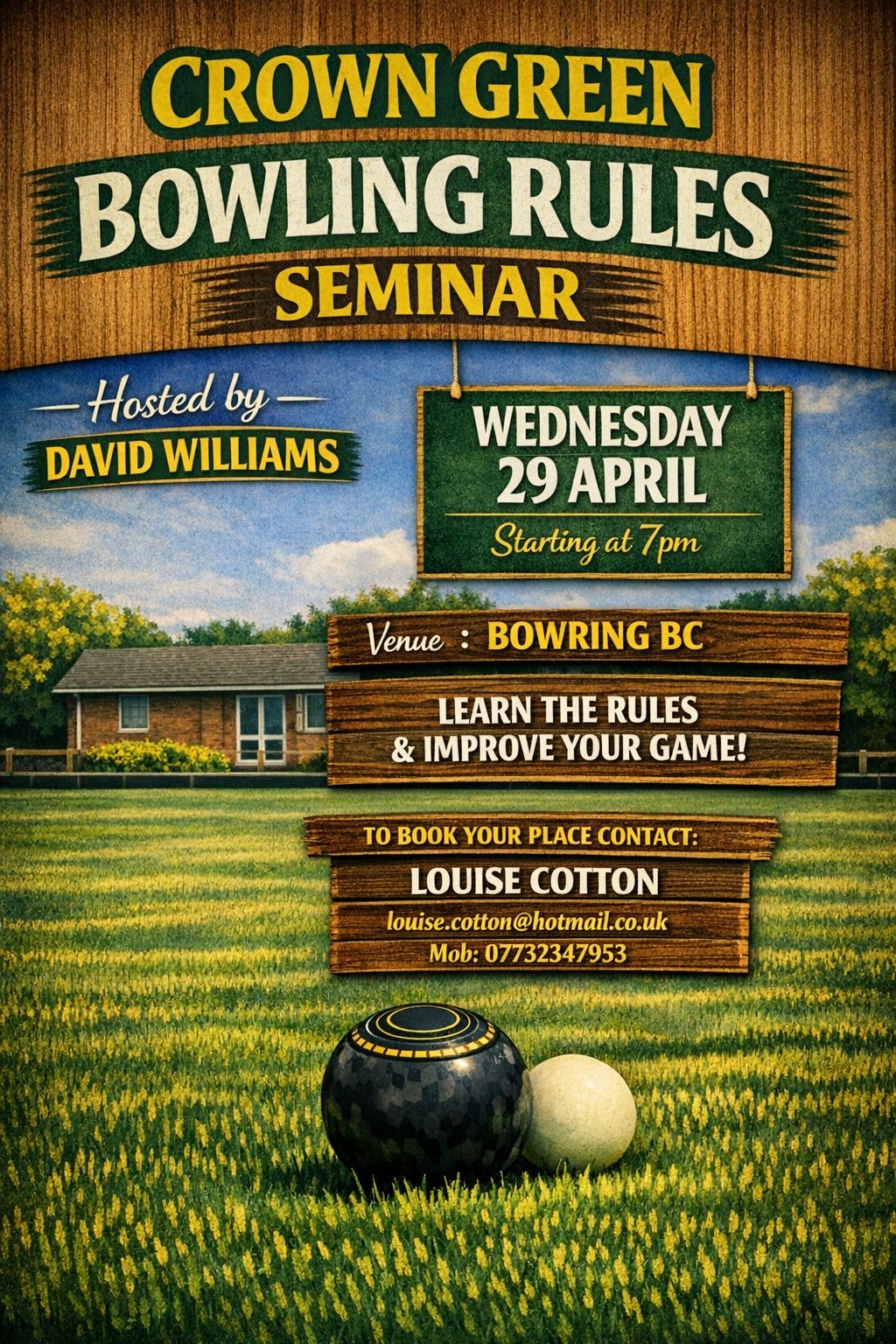 You just need to book your place at Bowring BC on Wednesday 29th April from 7pm . . .