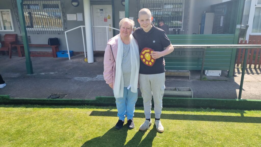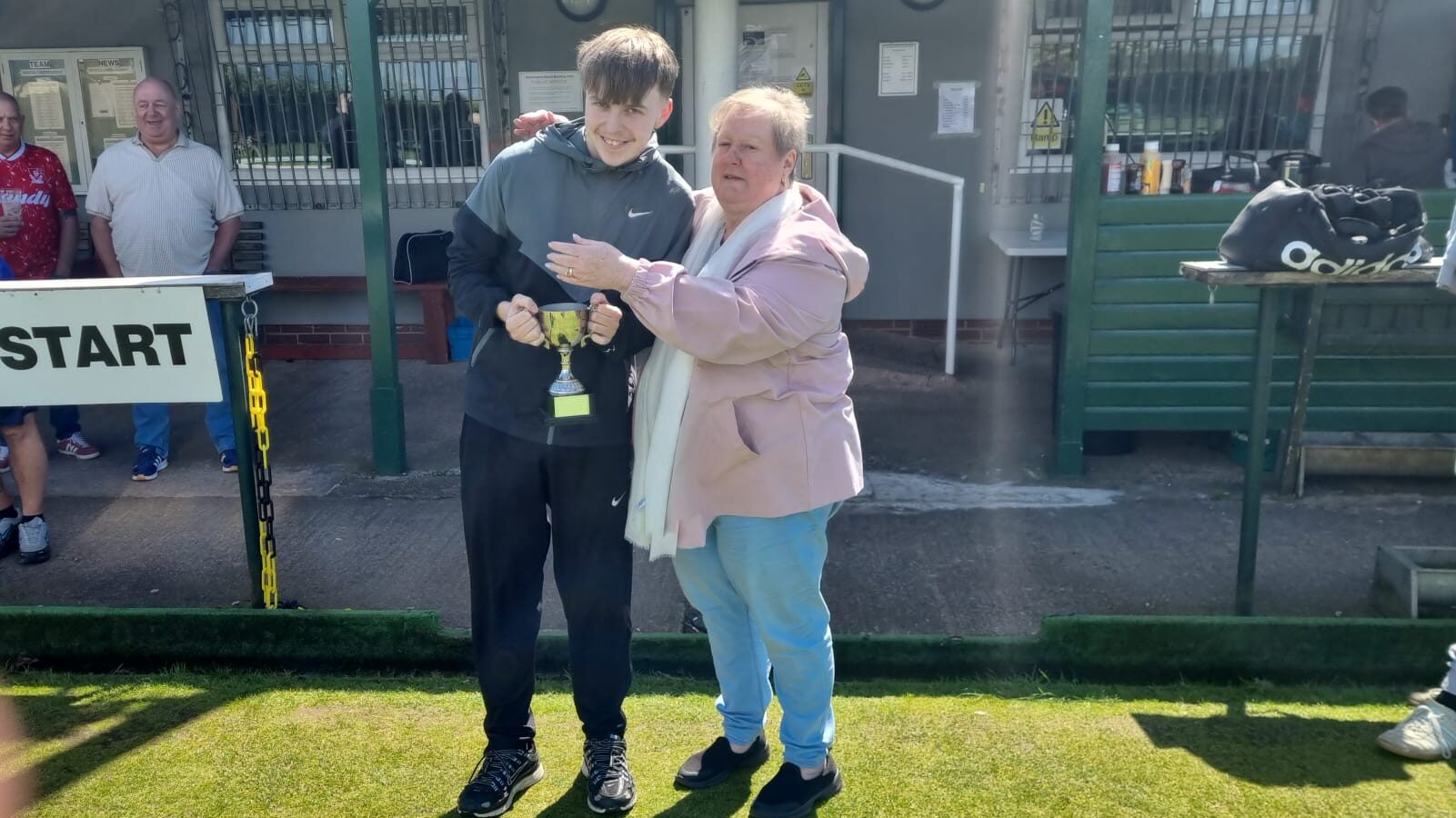 Jack Peach receives the runners up trophy from Donnington Wood Club Secretary Tracey Thompson.
